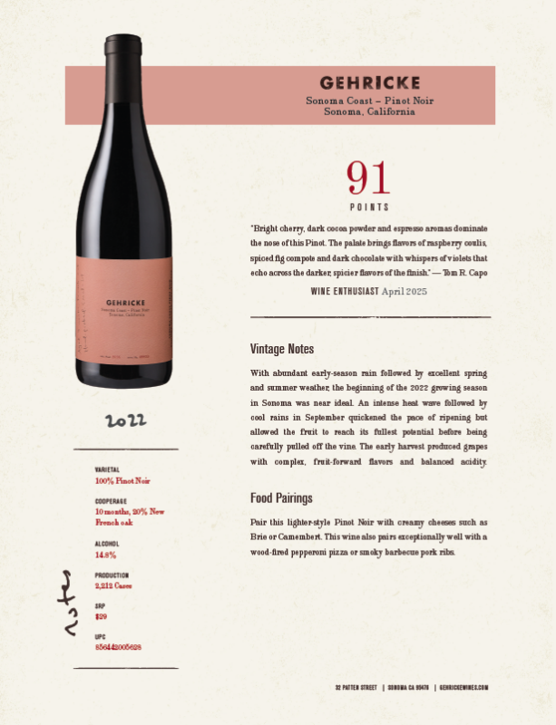 2023 Sonoma Coast Pinot Noir Wine Enthusiast Sell Sheet