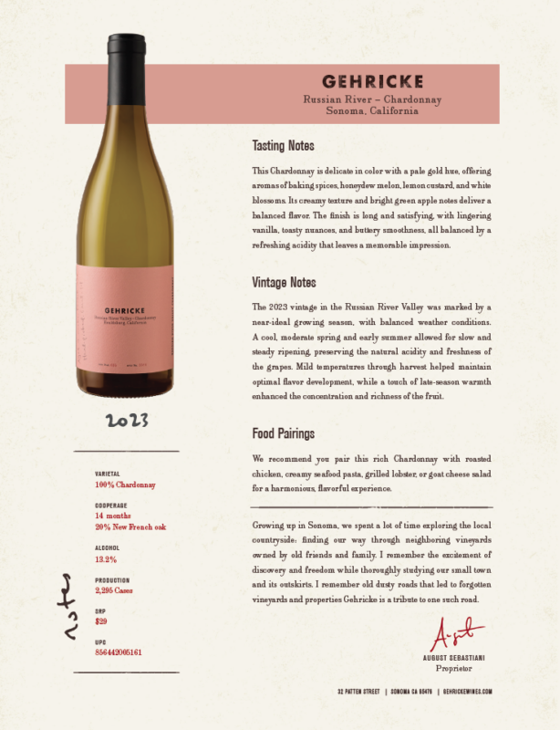 2023 Russian River Valley Chardonnay Wine Enthusiast Sell Sheet