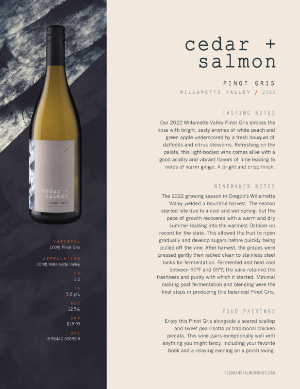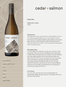 2024 Willamette Valley Pinot Gris Sell Sheet