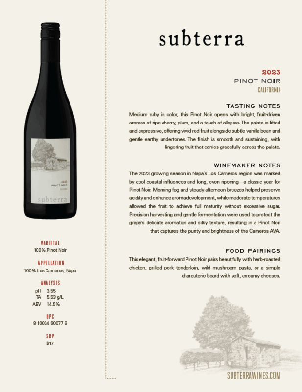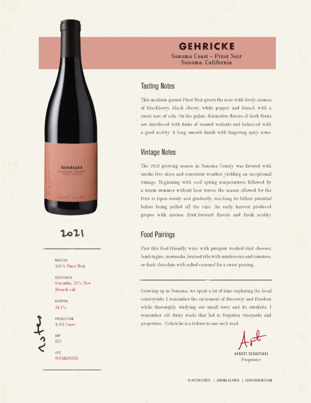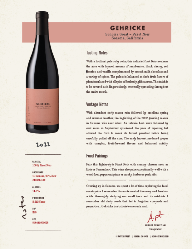 2023 Sonoma Coast Pinot Noir Sell Sheet