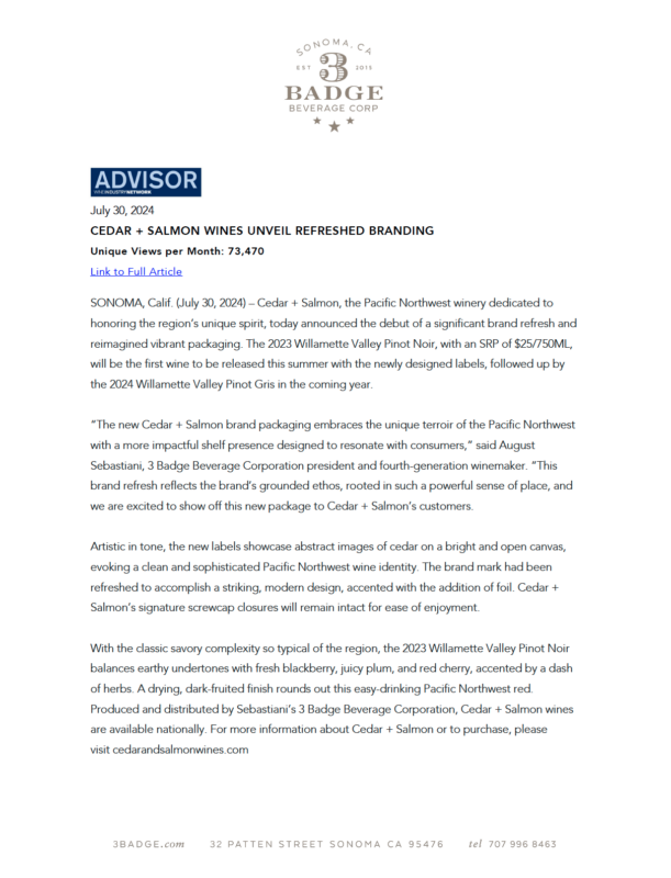 2024 Willamette Valley Pinot Gris, Wine Industry Advisor