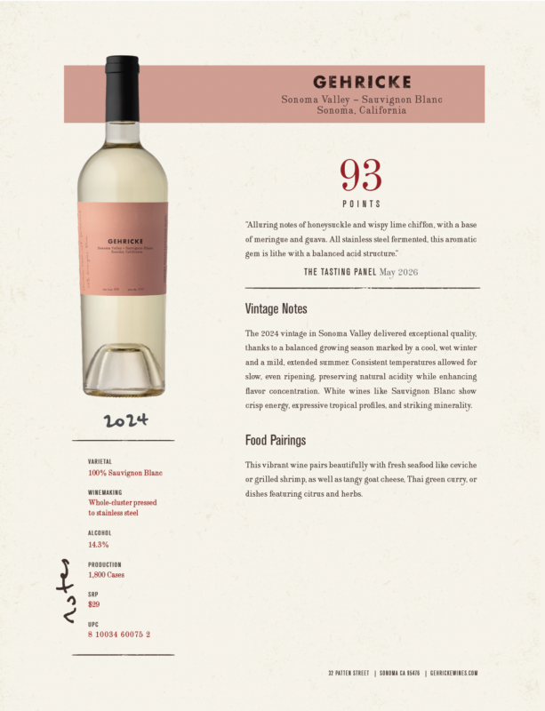 2024 Sonoma Valley Sauvignon Blanc Tasting Panel Sell Sheet
