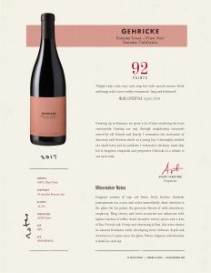2017 Sonoma Coast Pinot Noir Sell Sheet, Blue Lifestyle