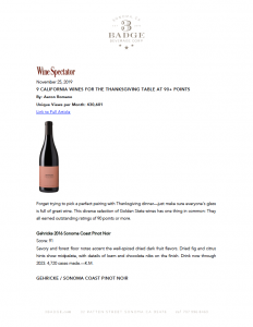 Gehricke Sonoma Coast Pinot Noir, Wine Spectator