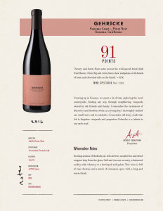 2016 Sonoma Coast Pinot Noir Sell Sheet, Wine Spectator