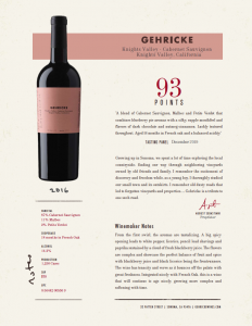 2016 Knights Valley Cabernet Sauvignon Tasting Panel Sell Sheet