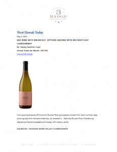 Gehricke Russian River Valley Chardonnay, West Hawaii Today