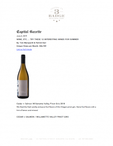 Cedar + Salmon Pinot Gris, Capital Gazette