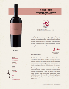 2016 Russian River Valley Zinfandel Wine Enthusiast Sell Sheet