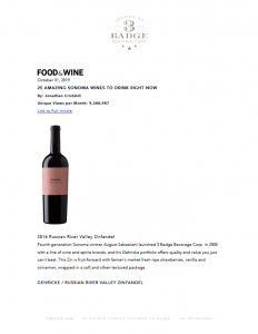Gehricke Russian River Valley Zinfandel, Food & Wine