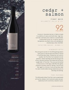 2018 Willamette Valley Pinot Noir Sell Sheet