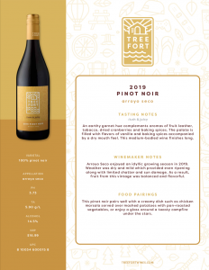 2019 Arroyo Seco Pinot Noir Sell Sheet