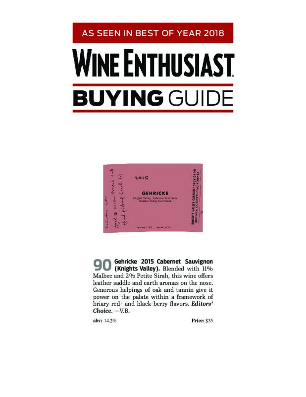 2015 Knights Valley Cabernet Sauvignon, Wine Enthusiast Best of Year Buying Guide 2018