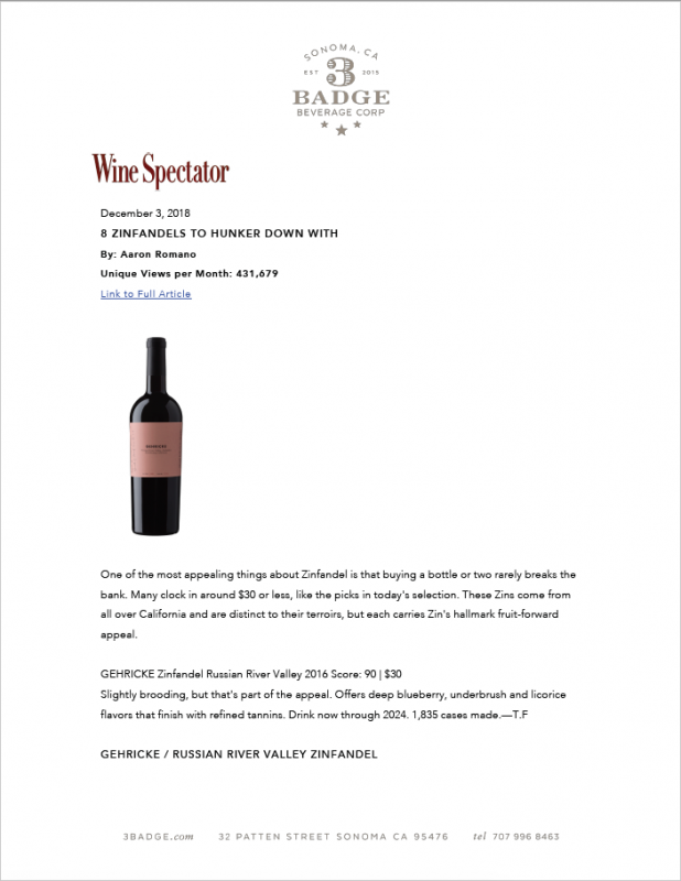 Gehricke Russian River Valley Zinfandel, Wine Spectator