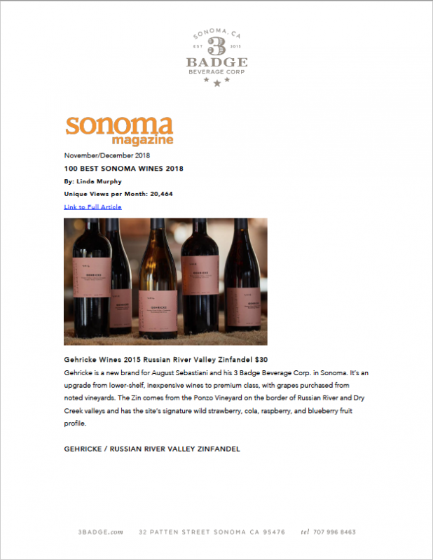 Gehricke Russian River Valley Zinfandel, Sonoma Magazine