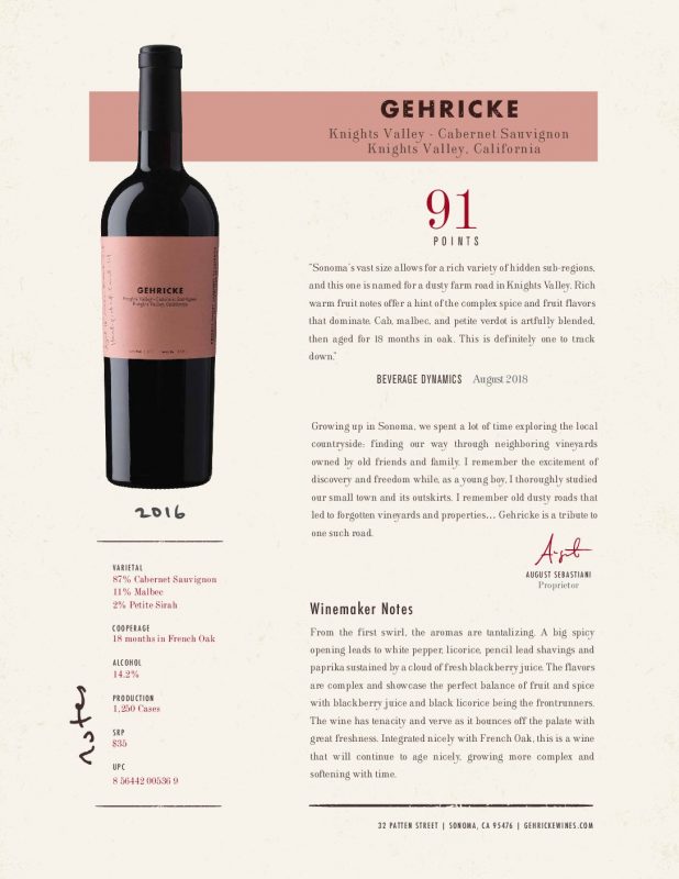 2016 Knights Valley Cabernet Sauvignon Sell Sheet